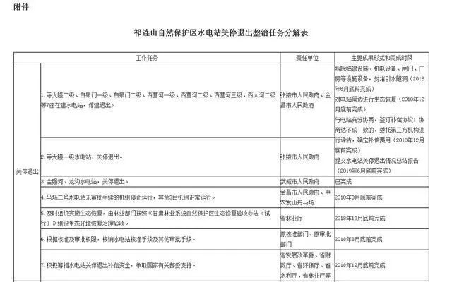 附件:祁連山自然保護(hù)區(qū)水電站關(guān)停退出整治任務(wù)分解表