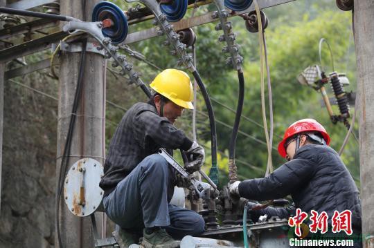 工人拆除水電站的電線設(shè)備 蔡亮 攝