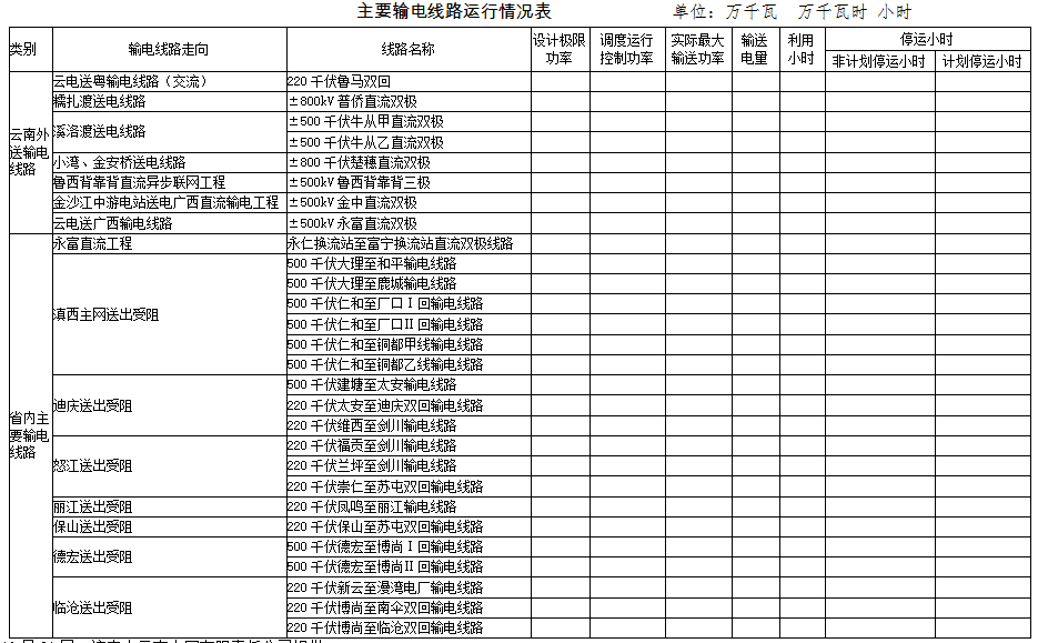 2.主要輸電線(xiàn)路運(yùn)行情況表