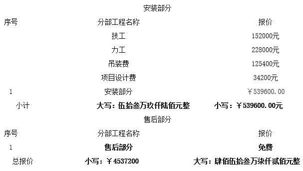 中標(biāo)金額:肆佰伍拾叁萬(wàn)柒仟貳佰元整(¥4,537,200.00)。