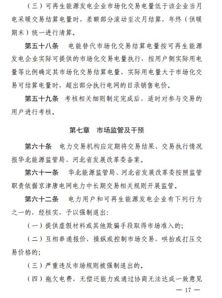 河北發(fā)改委:京津唐電網冀北(張家口可再生能源示范區(qū))可再生能源市場化交易規(guī)則