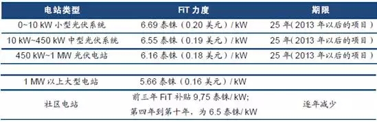 越南:2017年4月17日,通過對構(gòu)成太陽能項目固定資產(chǎn)的進口貨物進行免稅的法案,太陽能發(fā)電項目、輸變電項目所占土地可減免土地和水域的使用費、租賃費。同時規(guī)定,購電方有責(zé)任以2086越盾/kWh(約9.35美分/kWh)的價格全額購買已連網(wǎng)的太陽能發(fā)電站所生產(chǎn)的全部電力。