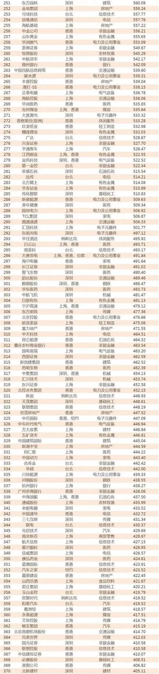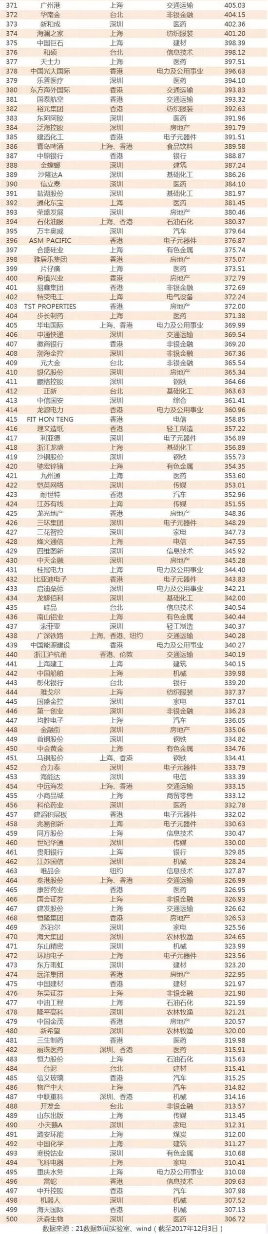 不過,香港聯(lián)交所上市的500強(qiáng)貢獻(xiàn)了最多的市值,這是因?yàn)榇蠖喔呤兄稻揞^為AH股,且伴隨港股今年連創(chuàng)新高,在港交所上市的500強(qiáng)數(shù)量和市值也水漲船高。