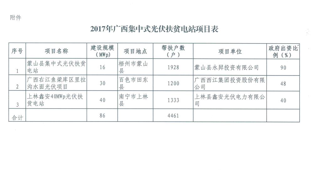 86MW!廣西公布2017年集中式扶貧光伏電站項目(附表)