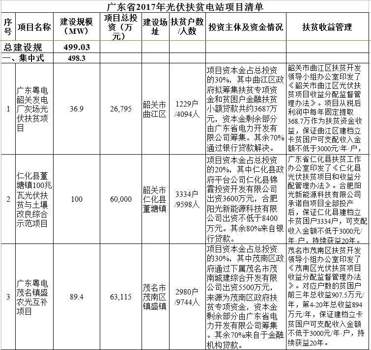 10項(xiàng)目共計(jì)499.03MW 廣東省2017年光伏扶貧電站項(xiàng)目清單發(fā)布