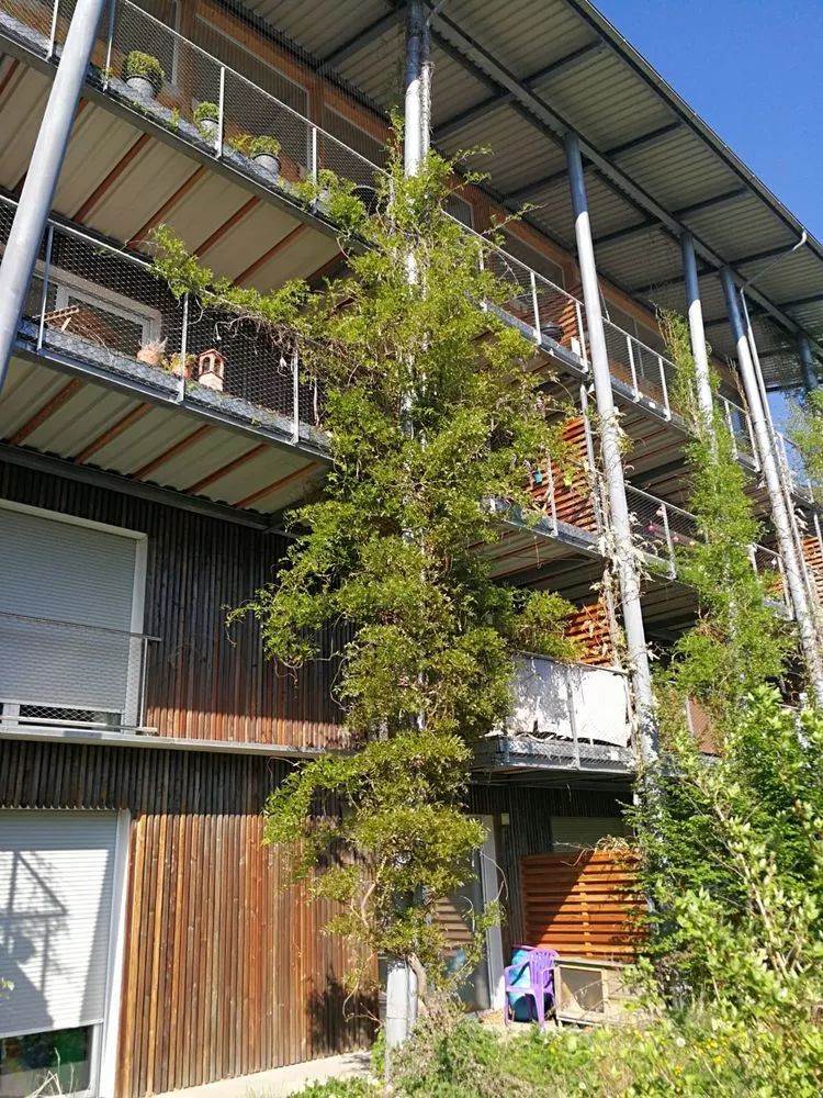 西側(cè)屋頂?shù)墓夥?、立柱、藤蔓、各種綠植。綠植有助于降低建筑的溫度。