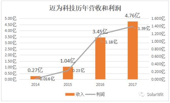 邁為也正是憑借著這款革命性的設(shè)備擊敗應(yīng)用材料、梅耶博格等一系列海外廠商,一舉拿下絲網(wǎng)印刷設(shè)備近90%市場份額。邁為科技也因此獲得豐厚回報,2014~2017四年間營業(yè)收入增長17.62倍;營業(yè)利潤增長86.8倍。