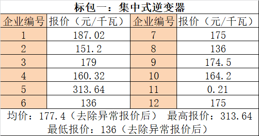 以下為本次招標(biāo)中逆變器企業(yè)報(bào)價(jià)信息(數(shù)據(jù)來(lái)源于光伏們):