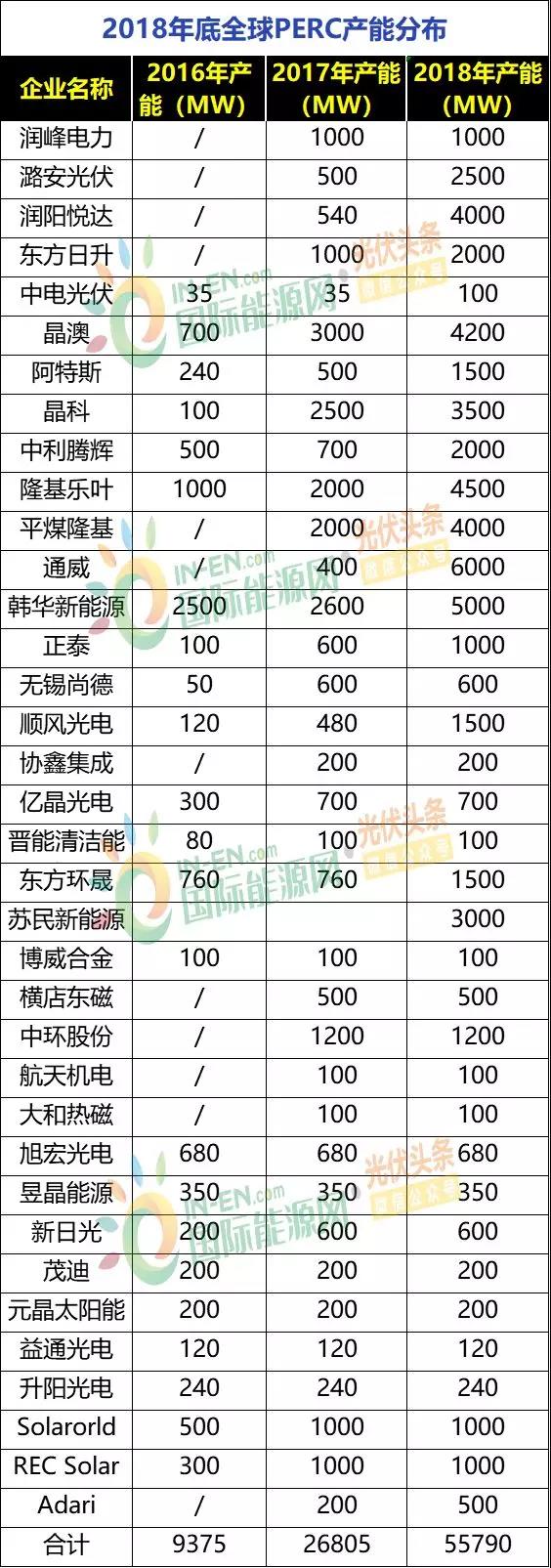 全球共有37家光伏企業(yè)生產(chǎn)PERC電池,國內(nèi)企業(yè)占26家。近兩年,天合、晶科和通威等一線大廠蜂擁上馬PERC電池產(chǎn)能,隆基也完成向PERC技術(shù)的升級(jí)改造。