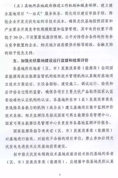 每個(gè)省(區(qū)、縣)可申報(bào)3個(gè)基地,總規(guī)模不超過2G瓦。2016年光伏發(fā)電未達(dá)到最低保障小時(shí)數(shù)的省(區(qū)、縣)不得申請。已建成未驗(yàn)收以及在建基地所在市(縣)級區(qū)域不安排新建基地。