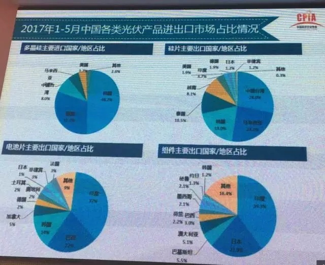 5、組件出口市場由歐美日成熟市場轉(zhuǎn)向新興市場的趨勢明顯,包括印度、巴西、巴基斯坦、墨西哥等;