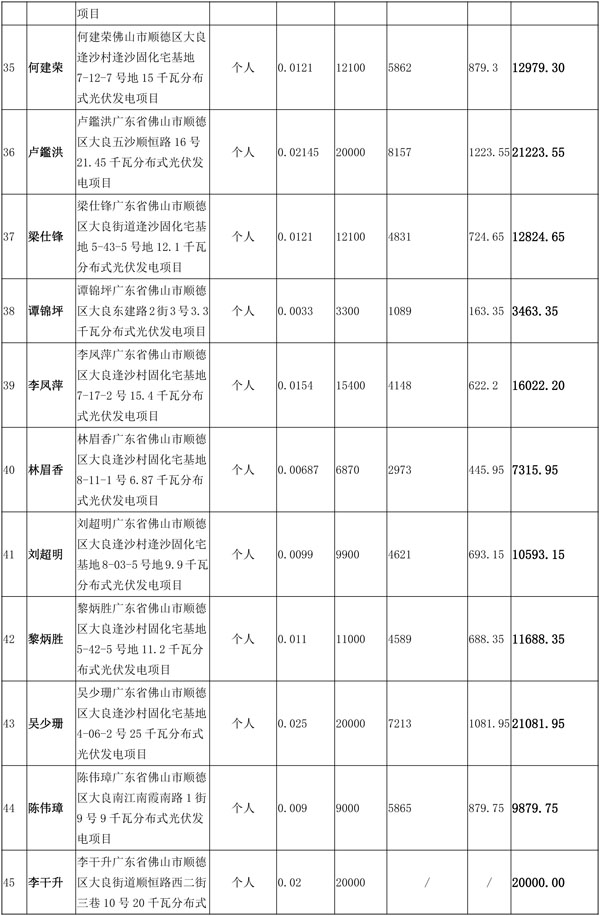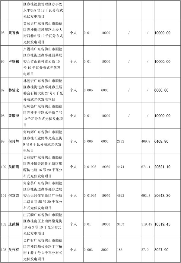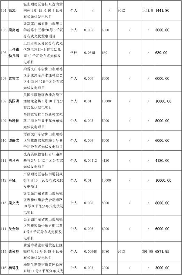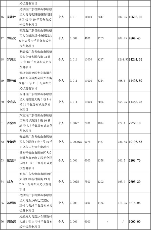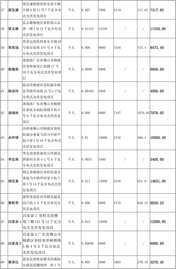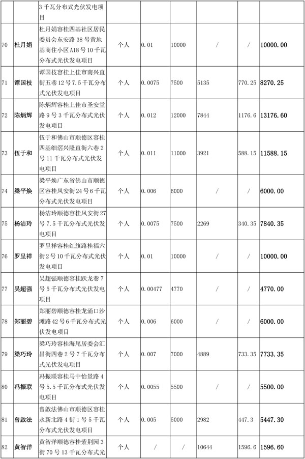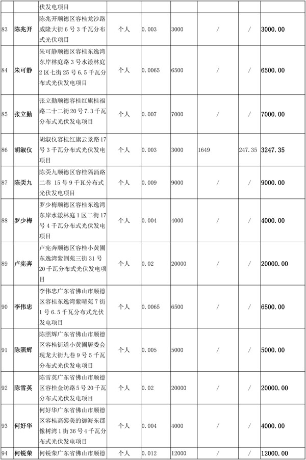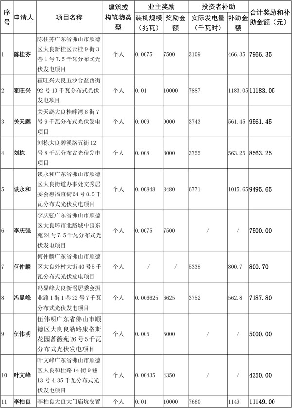 佛山市順德區(qū)光伏發(fā)電應(yīng)用項目獎勵和補助資金匯總表(2016年度)