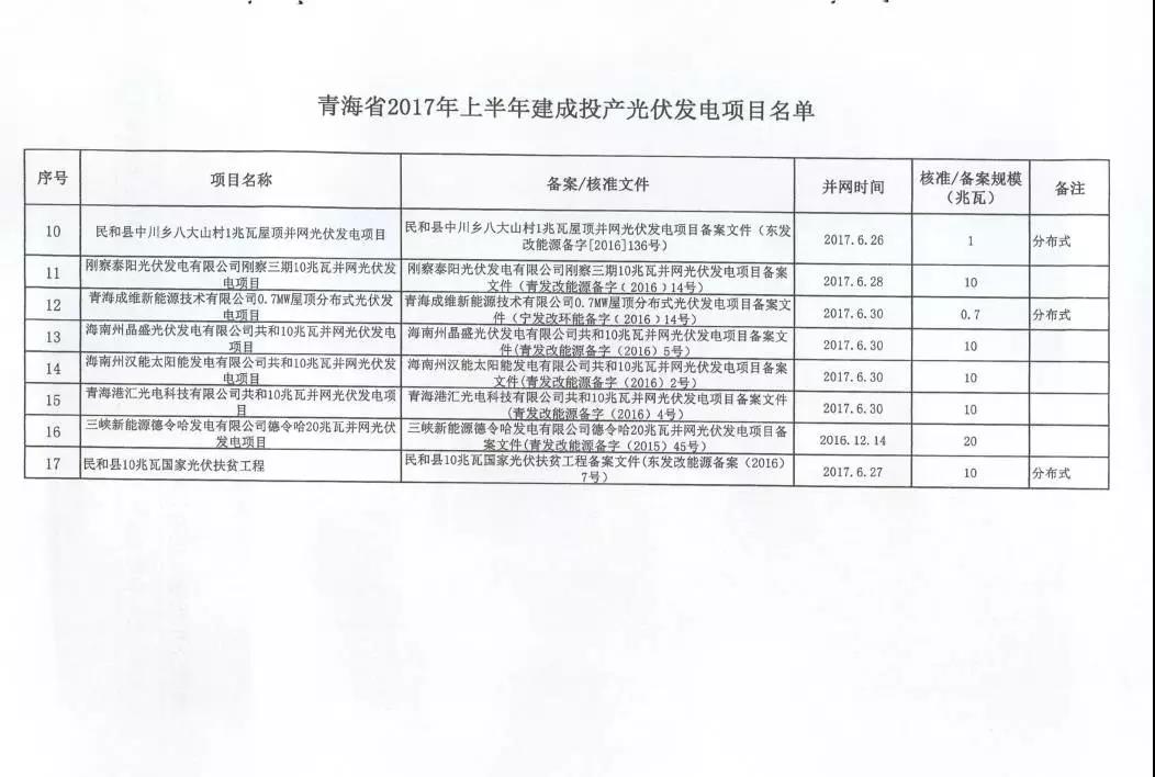 日前,青海省發(fā)改委發(fā)布《關(guān)于公布青海省2017年上半年建成投產(chǎn)光伏發(fā)電項(xiàng)目上網(wǎng)電價(jià)的通知》。2017年上半年,青海省共有17個(gè)光伏項(xiàng)目建成投產(chǎn),總規(guī)模200.2MW,其中包括5個(gè)分布式光伏發(fā)電項(xiàng)目。