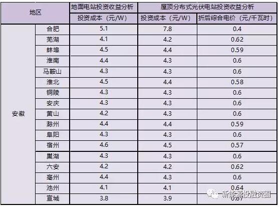 2018新電價:安徽省各市光伏項目投資收益率分析