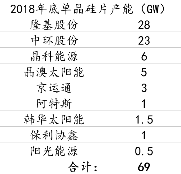 進(jìn)入2018年單晶硅片產(chǎn)能的擴(kuò)產(chǎn)步伐非但沒有停下來的跡象,反而還有加速的勢頭,不完全統(tǒng)計的幾家公司年底單晶硅片產(chǎn)能就會達(dá)到69GW,由于長晶工藝的優(yōu)化可以在不增加新設(shè)備的情況下增加產(chǎn)能以及其他未納入統(tǒng)計的公司的擴(kuò)產(chǎn),最終實際產(chǎn)能數(shù)據(jù)可能比上表中的還要高。我之前曾經(jīng)預(yù)測到2020年單晶的市場份額會達(dá)到80%,而現(xiàn)在來看這個產(chǎn)業(yè)替代的步伐比想象的要快得多,單晶領(lǐng)域的雙龍頭隆基和中環(huán)很多產(chǎn)能預(yù)計在2018年8月份投產(chǎn)。再配合通威和保利協(xié)鑫高達(dá)10萬噸高品質(zhì)的硅料產(chǎn)能于2018年2、3季度逐步投產(chǎn)解決高品質(zhì)硅料供應(yīng)短缺的隱憂,我們或許可以大膽預(yù)測在2018年四季度單晶的市場份額占比會接近70%,進(jìn)而讓單多晶孰優(yōu)孰劣的產(chǎn)業(yè)之爭一錘定音。(這里要特別說明一下,這個占比數(shù)據(jù)只是根據(jù)產(chǎn)能數(shù)據(jù)得出的理想假設(shè),實際情況則是面臨諸多挑戰(zhàn),多晶硅片完成金剛且改造后價格也下滑很多,單晶替代進(jìn)入深水區(qū)以后,價格戰(zhàn)勢必會比較激烈)