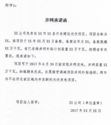 河北要求光伏電站需出具630并網(wǎng)承諾函