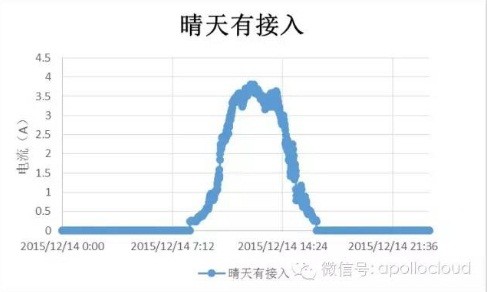 操千曲而后曉聲,觀千劍而后識器??催^大量的電流圖像之后,我們發(fā)現(xiàn),所有的接入的支路的電流形態(tài)是一個拋物線,在晴天的時候,連續(xù)而飽滿。這是由于太陽在一天的時間內(nèi),日出,正午,日落,是一個自然而連續(xù)的過程,作用在面板上之后,產(chǎn)生的電流同樣是自然而連續(xù)的。如下圖可以看到。