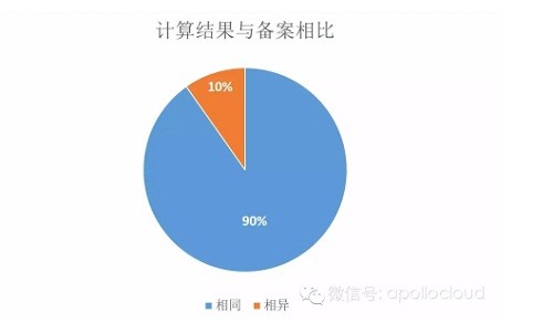 從圖中可以看到,計算結(jié)果與備案結(jié)果相比,有超過90%的相同,在與線下確認之后,發(fā)現(xiàn)實際情況與計算結(jié)果相同。也就是說,通過對數(shù)據(jù)的分析與挖掘,我們發(fā)現(xiàn)了備案信息與實際情況存在不符。