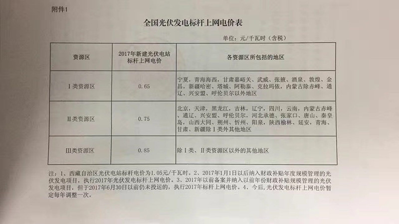 坊間一直在傳的2017年光伏上網(wǎng)電價終于正式下發(fā)。