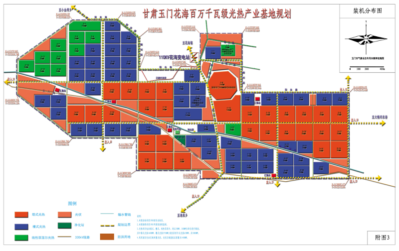 據(jù)規(guī)劃布局圖(見附件),目前已落戶該園區(qū)的包括國華電力玉門100MW熔鹽塔式電站、博成通達(dá)50MW菲涅爾光熱電站、金釩50MW槽式電站項(xiàng)目。其中國華電力項(xiàng)目為首批國家光熱示范項(xiàng)目之一,玉門獲批的另外三個示范項(xiàng)目均不在該園區(qū)規(guī)劃內(nèi)。