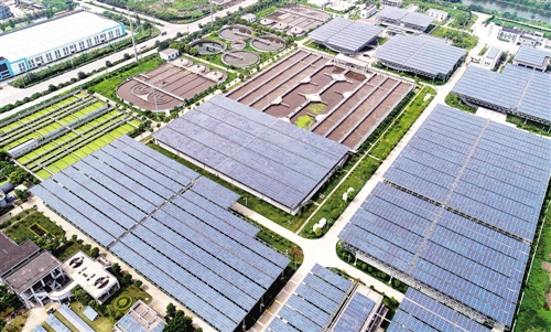 8月15日航拍的江蘇揚州六圩污水處理廠光伏發(fā)電項目。湯德宏攝