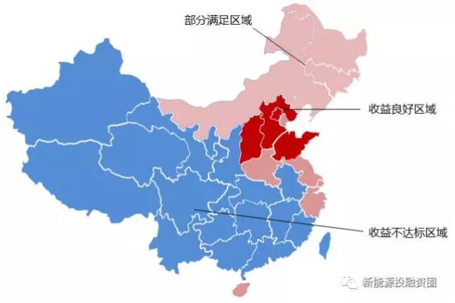 通過查詢各省大工業(yè)用電及商業(yè)用電可以看出,津京冀、山東、浙江、江蘇、上海、安徽、河南、湖南、廣東、海南等電價相對較高,都是比較適合做自發(fā)自用、余電上網(wǎng)類項目的,收益地圖見下圖。