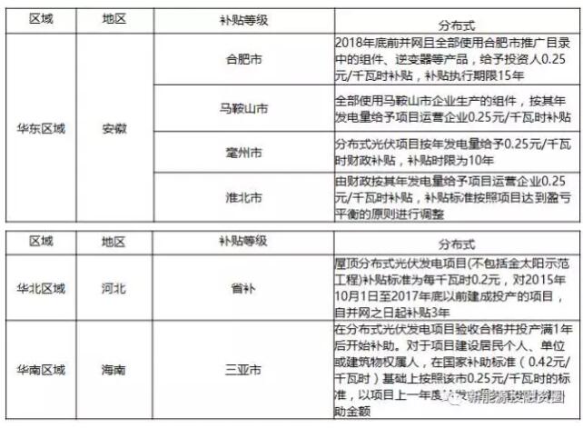 通過查詢?nèi)珖惺∈锌h光伏補(bǔ)貼政策,并加上補(bǔ)貼測算收益率,可以看出部分省市縣加上補(bǔ)貼可以滿足全額上網(wǎng)類項目投資收益率。加上補(bǔ)貼政策滿足收益率的補(bǔ)貼政策見下表。