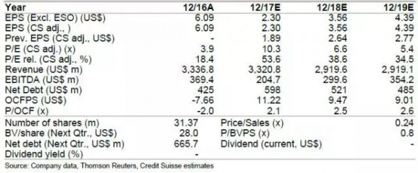CS預(yù)期2017年,2018年,2019年的收入相比2016年都沒有增長,并且2018年相比2017年還會下降13%。