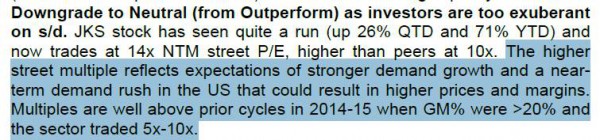 那我為什么認為華爾街對中國光伏公司是傲慢與偏見呢?我就從這份CS對晶科的研報說起。