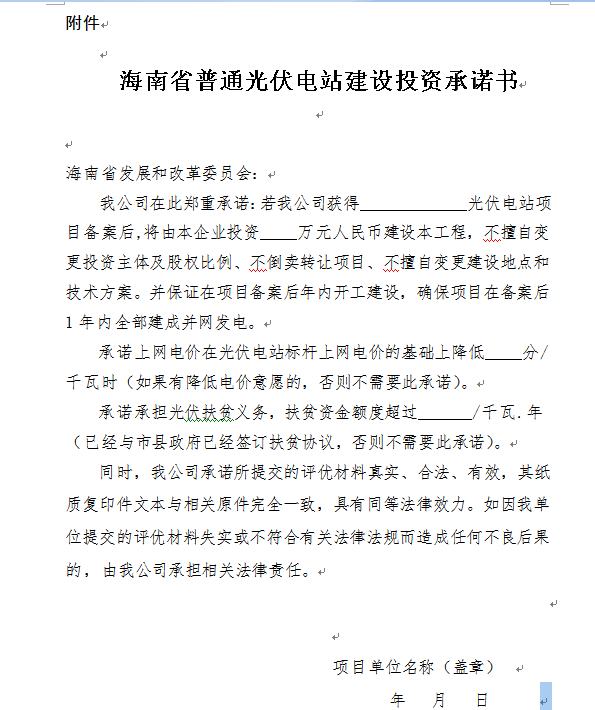 附件:光伏電站建設(shè)投資承諾書