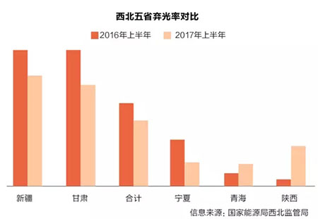 棄光率:西北地區(qū)情況好轉(zhuǎn)明顯。在有關(guān)部門對棄光地區(qū)裝機(jī)規(guī)模的嚴(yán)格控制,以及電網(wǎng)公司的積極推動(dòng)之下,與2016年相比,中國三北地區(qū)的棄光情況已有所改善。數(shù)據(jù)顯示,西北五省的棄光率同比下降4.2個(gè)百分點(diǎn),其中新疆、甘肅、寧夏等地的情況都有明顯好轉(zhuǎn)。值得注意的是,盡管國家電網(wǎng)公司對各個(gè)省公司已經(jīng)下達(dá)了硬性的新能源消納指標(biāo),并將其納入了績效考核,但除了國家電網(wǎng)之外,目前中國還存在著不少當(dāng)?shù)氐碾娋W(wǎng)企業(yè),由于這些企業(yè)由地方政府管理,因此并不受相關(guān)的績效考核約束。以陜西省為例,該省可再生能源消納比例位居全國倒數(shù)第一,盡管西北電網(wǎng)架結(jié)構(gòu)相對較好,但由于該省下屬的陜西地電對地方煤電有保護(hù)傾向,結(jié)果直接導(dǎo)致陜西省的棄光率從2016年的1.7%直接上升到2017年上半年的9.7%。