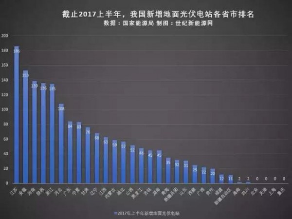 根據(jù)國家能源局最新發(fā)布的2017年上半年光伏發(fā)電建設(shè)運(yùn)行信息簡況顯示,全國新增裝機(jī)分布由西北地區(qū)向中東部地區(qū)轉(zhuǎn)移的趨勢更加明顯,華東地區(qū)新增裝機(jī)為8 25GW,同比增加1 5倍,占全國的34%,其中浙江,江蘇和安