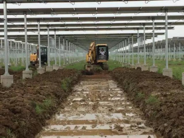 該項目中信博跟蹤系統(tǒng)采用桁架加拉筋的結(jié)構(gòu),具有立柱數(shù)量少、安裝方便快捷、現(xiàn)場不需要大型機(jī)械設(shè)備的特點(diǎn),系統(tǒng)整體形成一個網(wǎng)狀的穩(wěn)定結(jié)構(gòu),組件連接具有整體性,絕不會出現(xiàn)組件脫落現(xiàn)象,實(shí)現(xiàn)農(nóng)業(yè)與光伏完美結(jié)合。