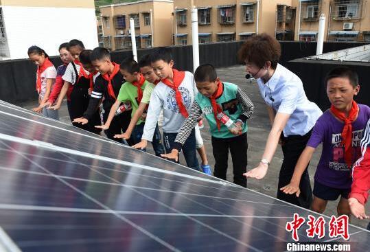 圖為學生在光伏助學科普教育基地參觀學習并親身感受光伏發(fā)電知識。周毅攝