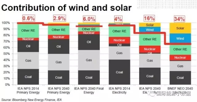 2040年風電光伏在全球發(fā)電占多大比例?IEA說16%;BNEF說34%