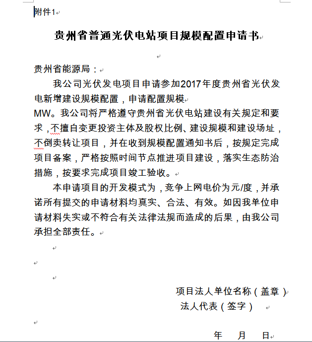 二、申請企業(yè)按照《貴州省普通光伏電站項目競爭性配置實施辦法(試行)》的要求報名參與競爭,同一法人主體申報項目最多為2個,單個項目申報規(guī)模不超過30MW。