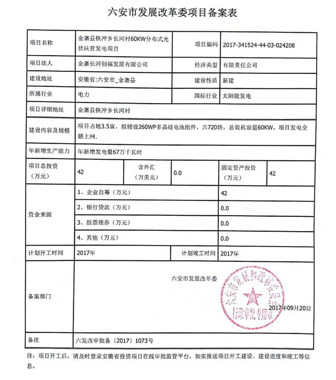 金寨縣鐵沖鄉(xiāng)長河村光伏電站備案