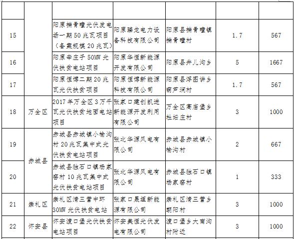 原標(biāo)題:河北省張家口市2017年集中式光伏扶貧項目安排情況公示