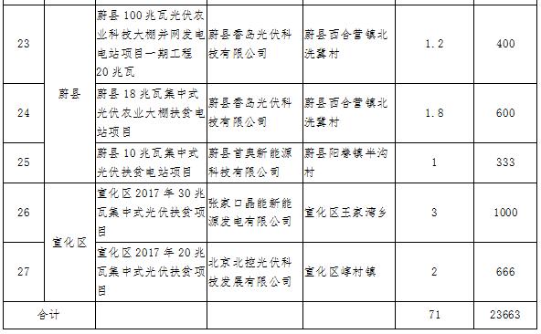 河北張家口市2017年集中式光伏扶貧項目安排公示:27個項目710MW