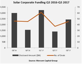 太陽能企業(yè)的風險投資(VC)資金比一年前更加強勁,在第二季度第三季度有所回升,在2017年的前九個月里,同比增長了7%,達到9.85億美元。