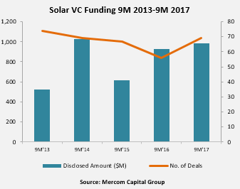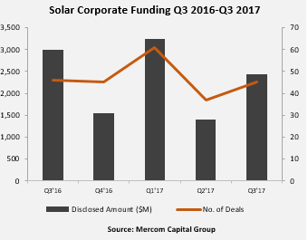 全球清潔能源通信和咨詢公司Mercom資本集團(tuán)近日發(fā)布了2017年第三季度太陽(yáng)能行業(yè)融資并購(gòu)活動(dòng)報(bào)告。