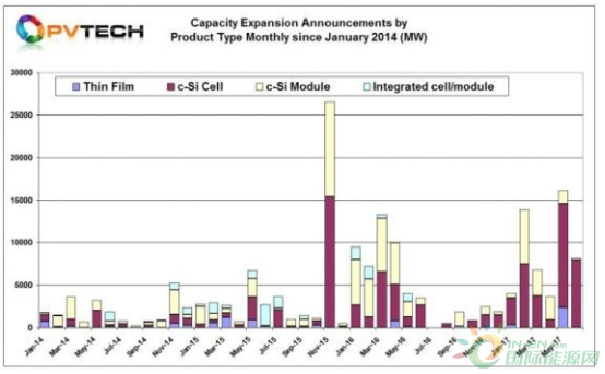 PV-Tech經(jīng)驗(yàn)豐富的太陽能分析師兼高級(jí)新聞編輯Mark Osborne發(fā)布的一項(xiàng)分析顯示,2017年上半年計(jì)劃的全球光伏生產(chǎn)容量擴(kuò)張比2016年下半年增長許多,幾乎與2016年上半年的峰值記錄持平。