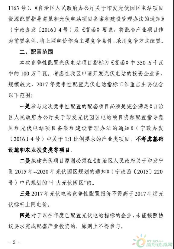 電價(jià)競(jìng)價(jià)、必須滿足產(chǎn)業(yè)配套要求,寧夏發(fā)布1GW 2017年指標(biāo)配置方案