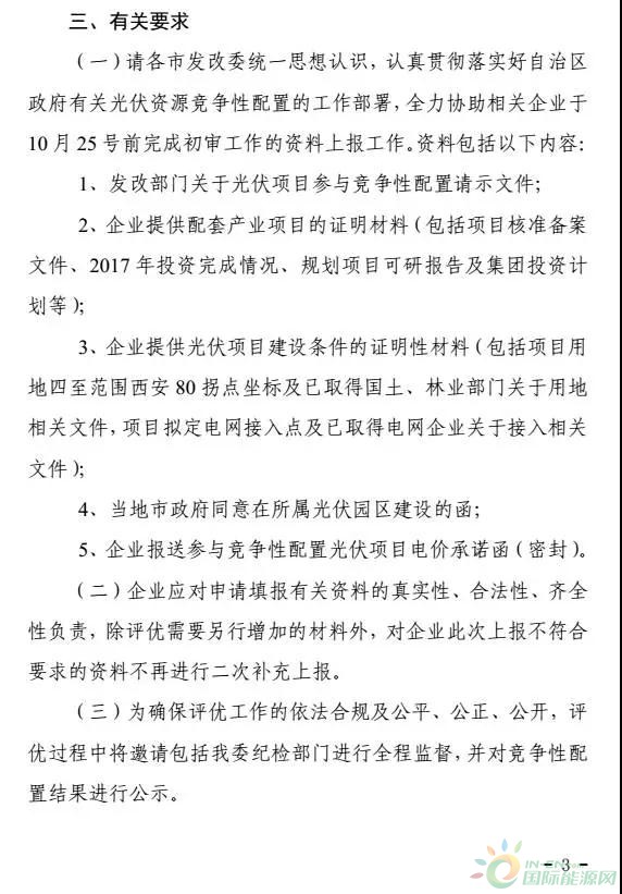 日前,寧夏回族自治區(qū)發(fā)改委發(fā)布文件,對(duì)該區(qū)1GW光伏電站項(xiàng)目指標(biāo)開(kāi)展競(jìng)爭(zhēng)性配置。文件中明確,此次競(jìng)爭(zhēng)性配置的配套項(xiàng)目必須在已規(guī)劃的十大光伏園區(qū)內(nèi)且滿足產(chǎn)業(yè)配套要求,不考慮基礎(chǔ)設(shè)施和農(nóng)業(yè)扶貧類等項(xiàng)目
