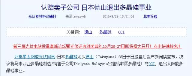 或者由于開工率不足,正在一個(gè)個(gè)倒下,比如日本的多晶硅龍頭德山: