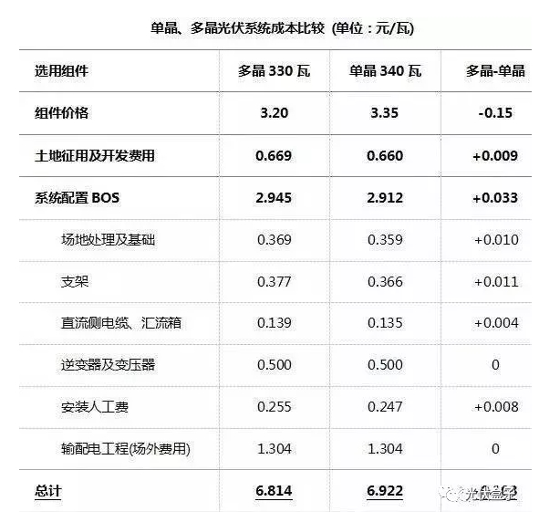 假設(shè)目前可選的多晶組件功率為330瓦,單晶組件功率為340瓦,電站投資者應(yīng)該選擇多晶組件還是單晶組件?