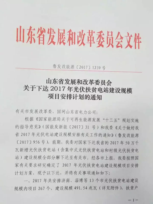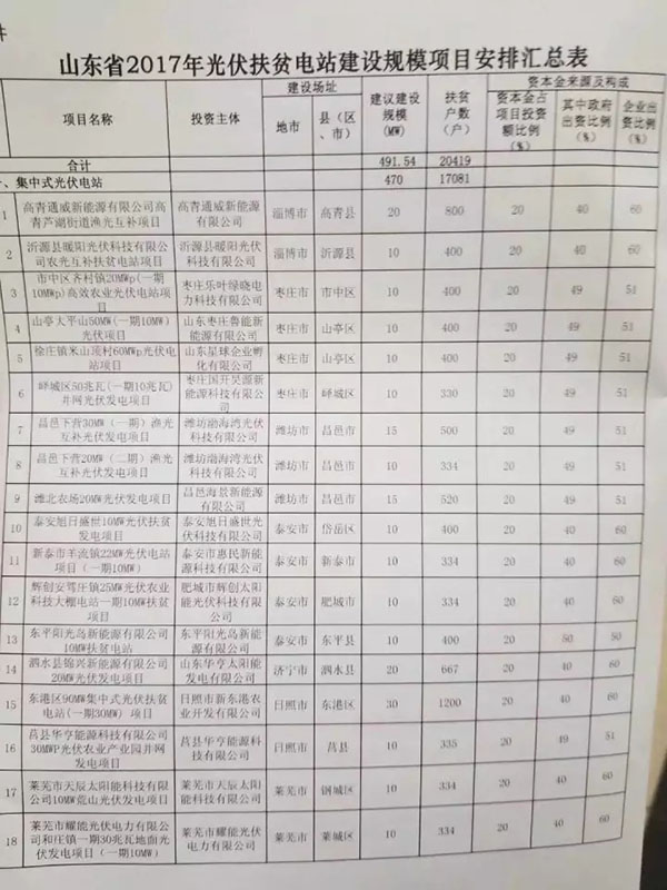 今日,山東省發(fā)改委公布2017年光伏扶貧電站建設(shè)規(guī)模項(xiàng)目安排計(jì)劃。