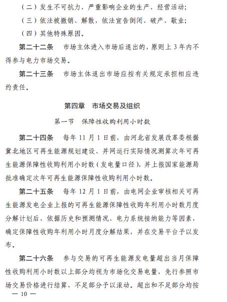 河北發(fā)改委:京津唐電網(wǎng)冀北(張家口可再生能源示范區(qū))可再生能源市場化交易規(guī)則