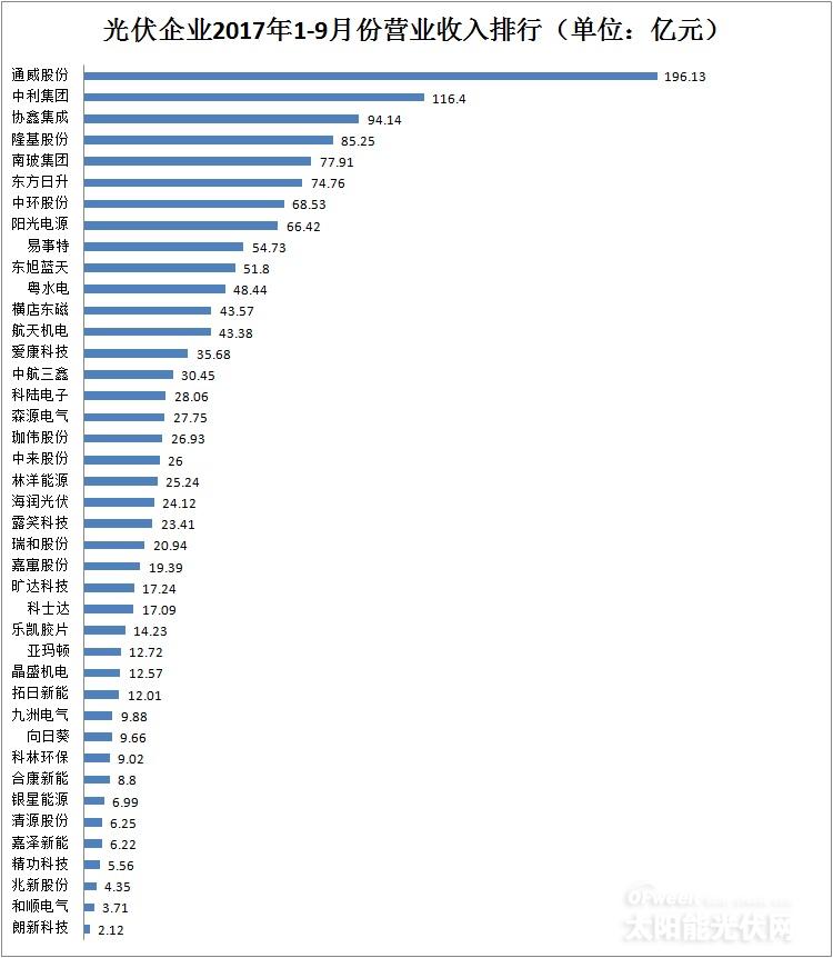 最新:41家光伏上市公司2017年前三季度營收/凈利潤/總資產(chǎn)排行榜