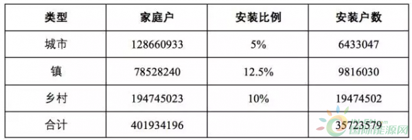 考慮到房屋空置率、安裝意愿等因素,一個村的安裝戶用大概只占到總可安裝戶數的50%~60%。由于該數值低于之前取的5%~12.5%,因此認為不愿、不能安裝的都在未安裝之列。